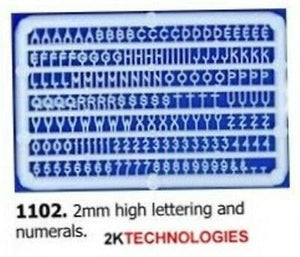 Slaters 1102 - 2mm High Letters & Numbers White Plastic