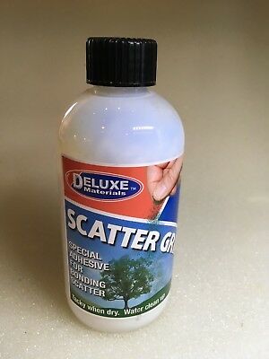 USE FOR BONDING SCATTER MATERIALS. USE ON HARDBOARD, PLY, PAINTED SURFACES, PLASTIC & CARD